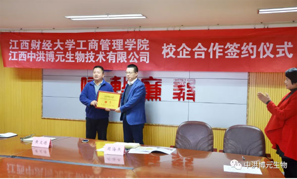 On November 25, 2020, despite the cold weather, in the conference room on the fourth floor of the School of Business Administration of Jiangxi University of Finance and Economics, the warmth is warm. The signing ceremony and unveiling ceremony of the school-enterprise cooperation between Jiangxi University of Finance and Economics and Jiangxi Zvast-Biotechnology Co., Ltd. are here Held.